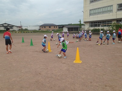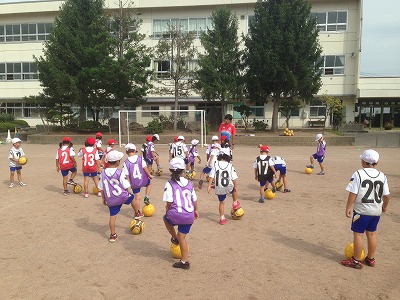 それぞれの学年で違ったメニューを行います。ドリブルやボール遊びなど、それぞれの学年が真剣に、楽しんで練習をしてくれました。
