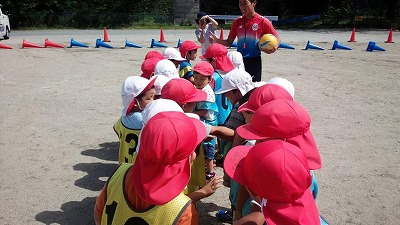 ふれあいフィールドでは地域貢献活動の一環として幼稚園・保育園・小学生を対象に、アカデミーコーチを派遣し、実施しているサッカー教室です。