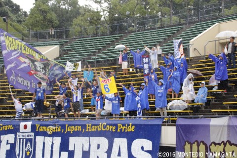 天皇杯三回戦は神戸総合運動講演ユニバー記念競技場での開催で、対戦相手はヴィッセル神戸。遠隔地でのアウェイ、そして雨の中にも関わらず、山形から、全国から多くのサポーターのみなさまに集まっていただきました。