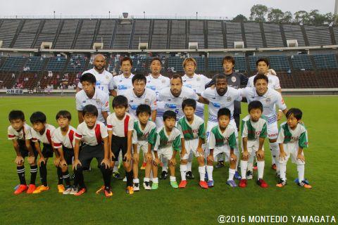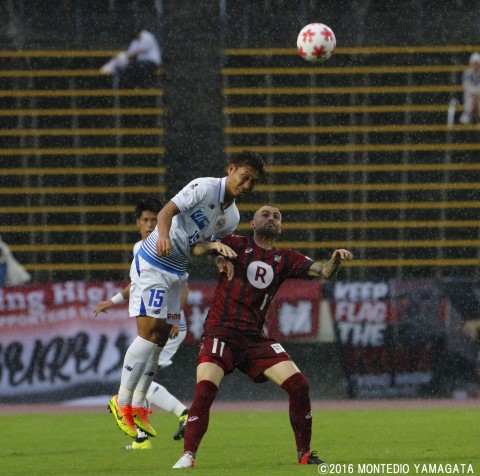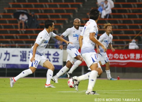 栗山、田代、石川選手のスリーバックを採用、ディエゴ選手、ディエゴ・ローザ選手のシャドーに大黒将志選手のワントップで試合に臨んでいきます。