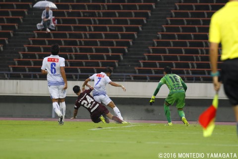 延長戦は相手は9本のシュートを放ち続け、モンテディオは耐える展開が続きます。