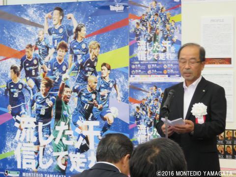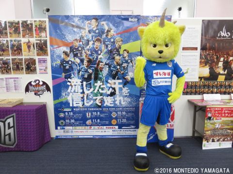 この施設を訪れて頂く方にモンテディオの存在をインパクトを持って知って頂ければという思いで、我々モンテディオも全高2m15cmの後半戦ポスターを掲出しました。