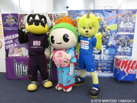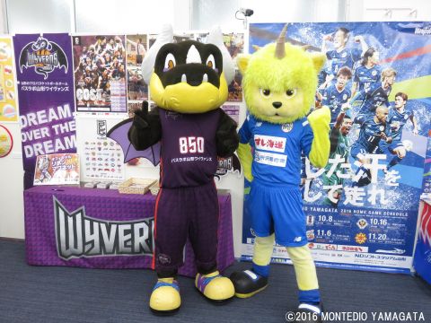 Bリーグ 山形ワイヴァンズのヴァンゴーと再会のツーショット。