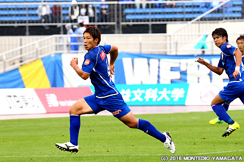 左サイドライン際を激しく上下動する山田拓巳選手。