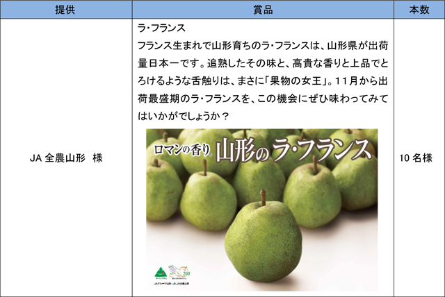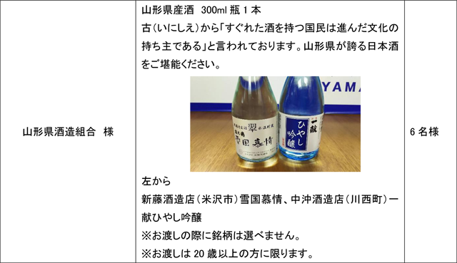 モンテディオ山形の勝利に貢献した選手が表彰されます。また、ご来場いただいたお客様も、「おいしい山形サポーター賞」にご応募いただくと抽選で以下の豪華賞品をお届け!