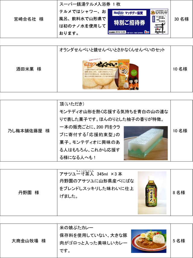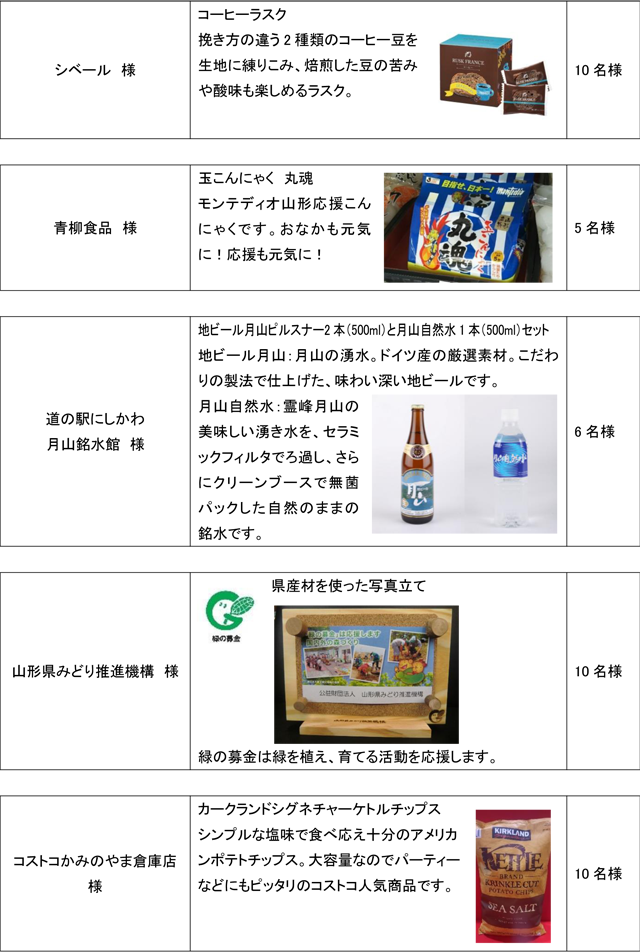- モンテディオ山形選手サイン入り公式ユニフォームやサイン色紙を抽選でプレゼントいたします。