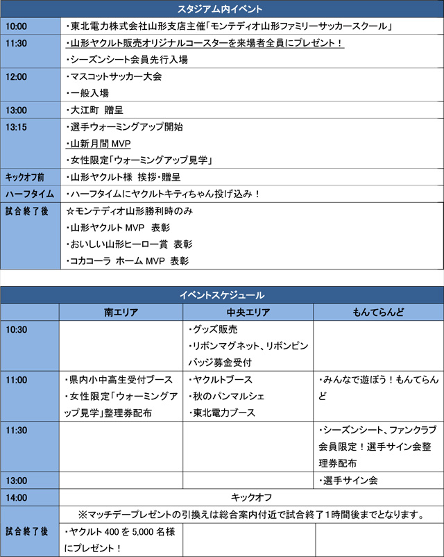 2016明治安田生命J2リーグ第36節 モンテディオ山形VS. 東京ヴェルディの開催概要を、次の通りお知らせいたします。下線部が追加・変更部分となります。