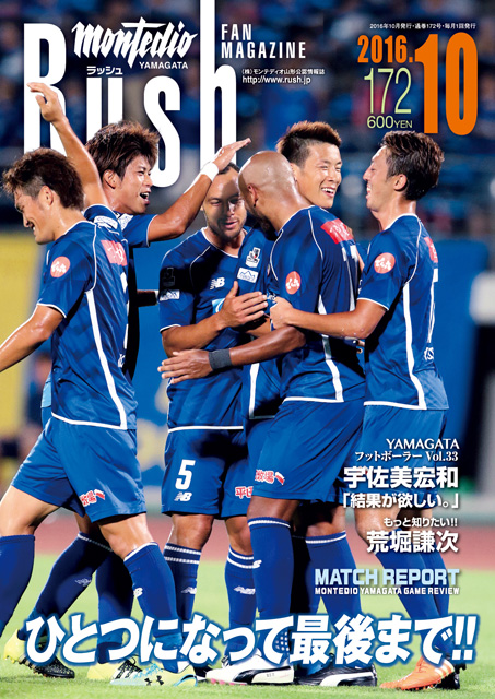 16年シーズンはリーグ戦残り8試合。最後まで戦い抜くモンテディオ山形をサポートすべく、Rush編集部もひとつになってサポートしていきます。10月号のロングインタビューは宇佐美宏和選手。2児の父としての一面とサッカー選手としての一面が伺えるインタビューとなりました。私服インタビュー「もっと知りたい」は荒堀謙次選手。愛妻家でもある荒堀選手の素顔に直撃しました。