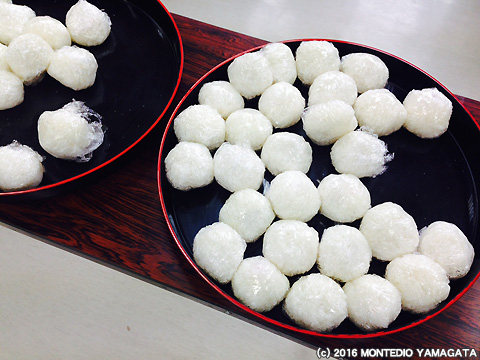 あいにくの天候となったこの日の大蕨棚田。取り入れ作業は中止となり、収穫祭のみの開催となりました。美味しいモンテ棚田米で作ったおにぎりや、朝収穫された土芋で作る今が旬の山形芋煮、お漬物や枝豆とても美味しそうなものが、たくさん並んでいました。