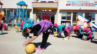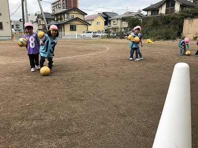 それでは早速、一人一個ボールをもらってください!笑
