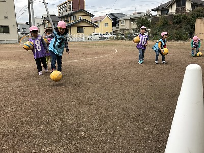 ドリブルとシュートにもチャレンジ!いっぱいゴールを決めてね。