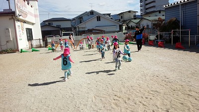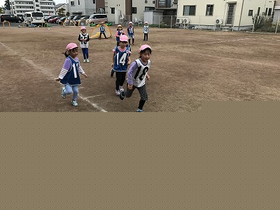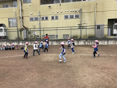 コーチからボールを取ろうとみんなでボールへ向かいます!
