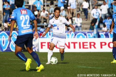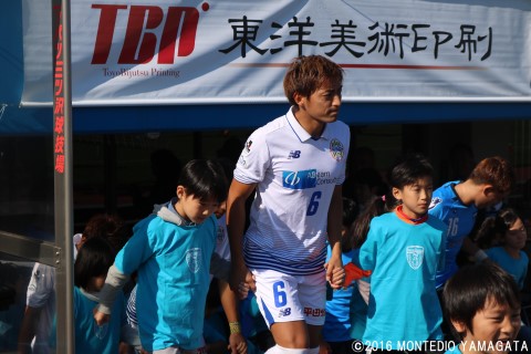 相手、横浜FCのゲームキャプテンは西河翔吾選手。山形ではキャプテンというイメージは薄かっただけに、新鮮な印象。