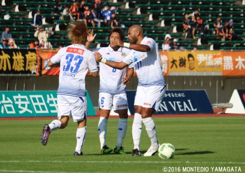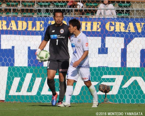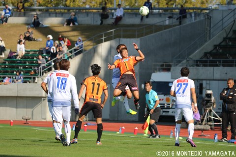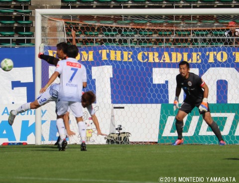 ゴール前に飛び出していた山田拓巳選手が頭で合わせゴールネットを揺さぶります。
