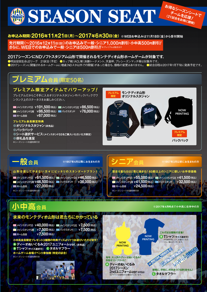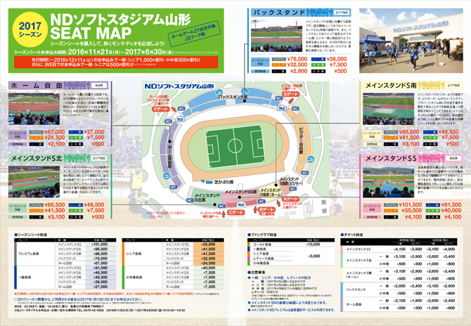 ◎シーズンシート会員は、2017シーズンにNDソフトスタジアム山形で開催されるホームゲームが対象です。(明治安田生命J2リーグ戦21試合)