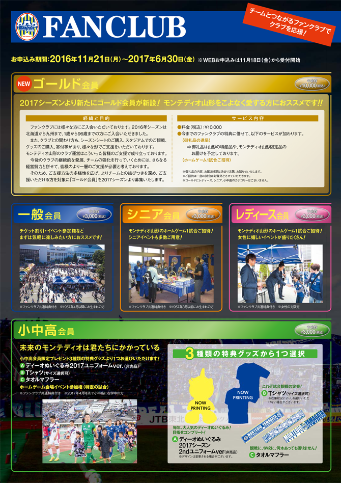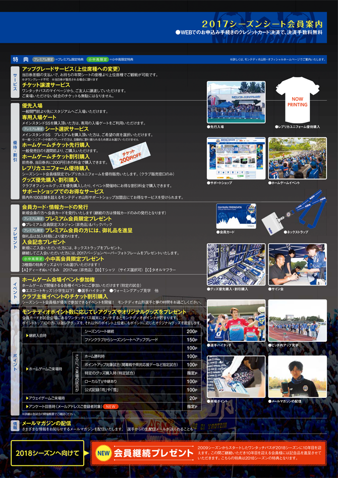 2017シーズンシート会員・ファンクラブ会員 料金・販売概要