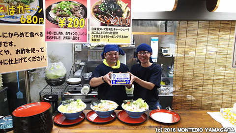 リボンマグネット募金の贈呈(三栄本社様、寅真らーめん様、山形新聞新庄専売所様)