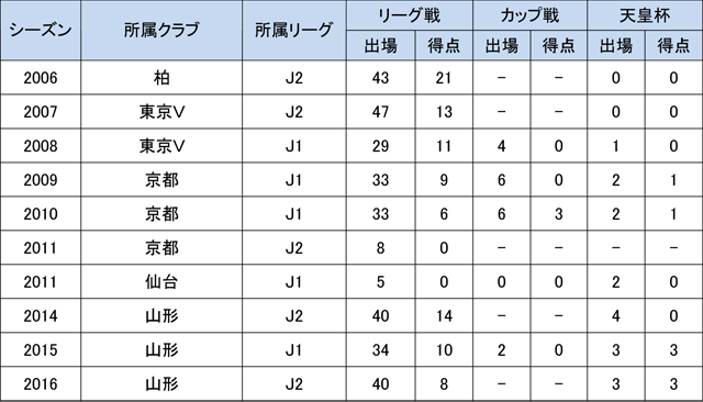 コリンチャンス ジュニオール(ブラジル)→パルメイラス ジュベニール(ブラジル)→パルメイラス(ブラジル)→ジョインビレ(ブラジル)→パルメイラス(ブラジル)→ヴィッセル神戸→パルメイラス(ブラジル)→柏レイソル→東京ヴェルディ1969→東京ヴェルディ→京都サンガF.C.→ベガルタ仙台→京都サンガF.C.→ポルトゲーザ(ブラジル)→ロボスBUAP(メキシコ)→アメリカRN(ブラジル)→モンテディオ山形