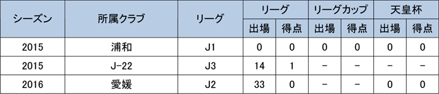 - J3リーグ戦通算14試合出場1得点