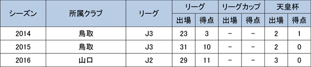 長洲SC→大阪産業大付属高→大阪産業大→ガイナーレ鳥取→レノファ山口FC