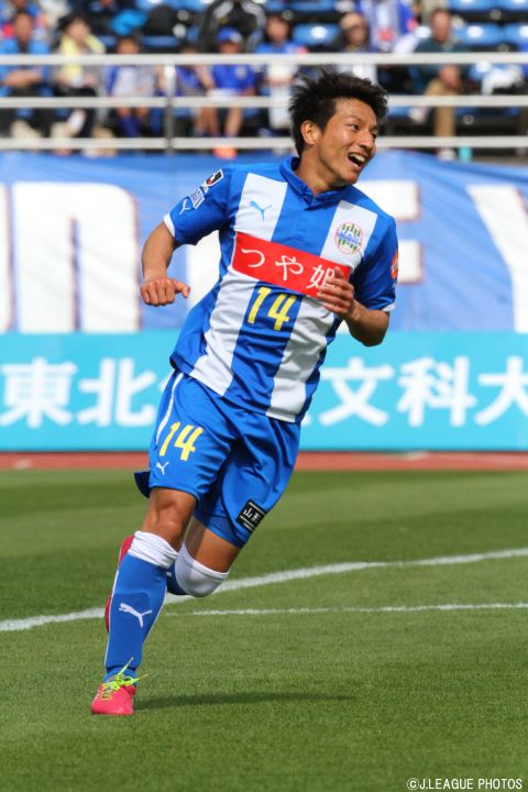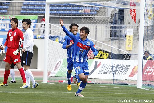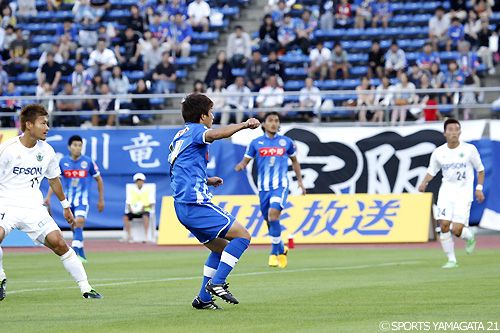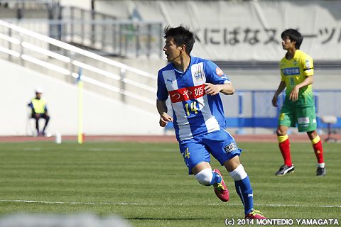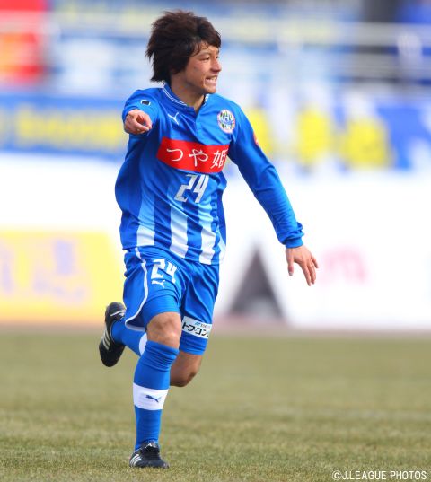 山形では途中出場の試合が続くもプレーオフ進出争い生き残りのかかった第41節大分戦に初先発、2013年のシーズンには完全移籍を果たします。