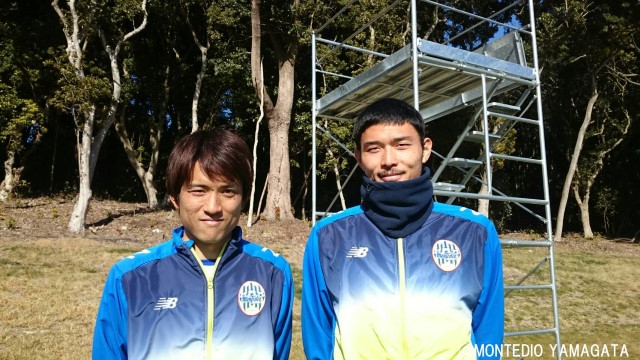続いてMF風間宏希選手。「初めてのゲームで最後の方で、判断が遅れたところがあった。監督はより上を目指しているので、もっともっと質をあげていきたい。チームは明るいし、やる気に満ちている」と山形でのいいチャレンジが出来ているようだ。