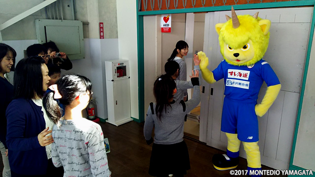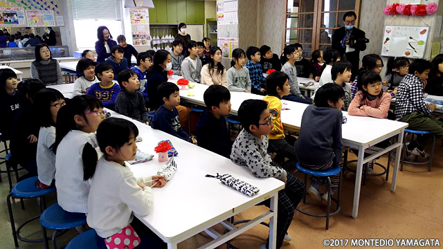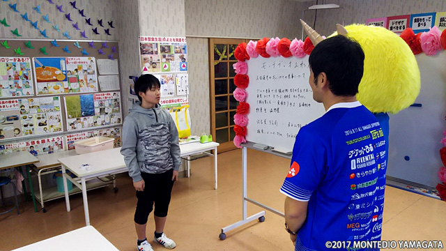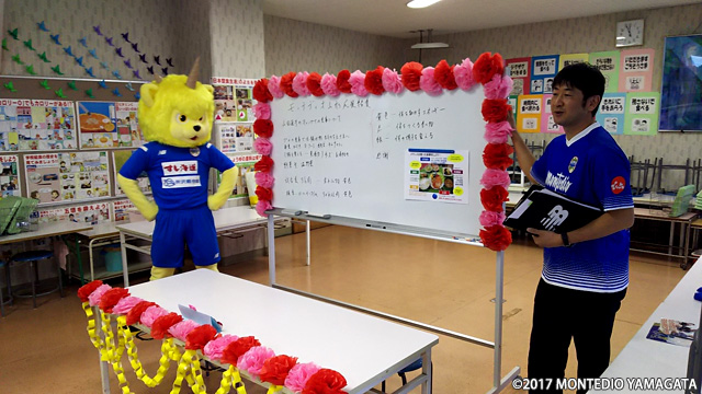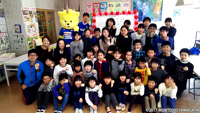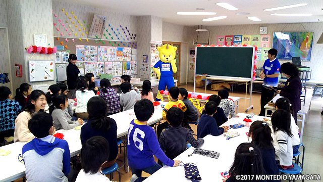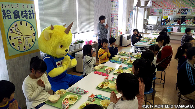 2017年2月7日(火)、鶴岡市立栄小学校でモンテディオ山形応援給食が行われました。この応援給食は山形県教育委員会とモンテディオ山形の共同企画で、「児童生徒の望ましい食習慣の形成を図る」ために毎年行われている食育事業です。