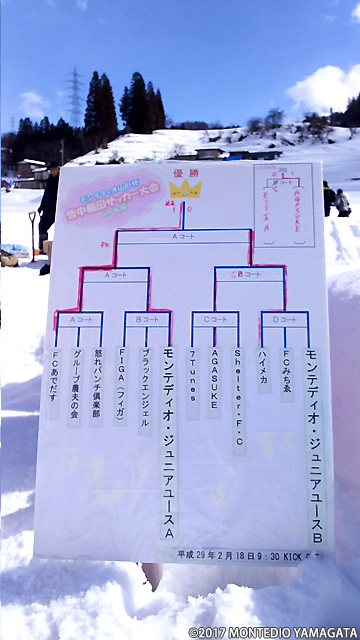この大会は、山辺町大蕨の棚田の中でのサッカー体験を通して、モンテディオ山形のチームとサポーター、サッカーファン、そしてモンテディオ山形のホームタウン住民が交流を深める場を創出するとともに、「棚田での雪中サッカー」という新たなサッカーの楽しみ方を体験してもらうことで、モンテディオ山形を起点とした元気な地域づくりに貢献することを目的に行われているものです。