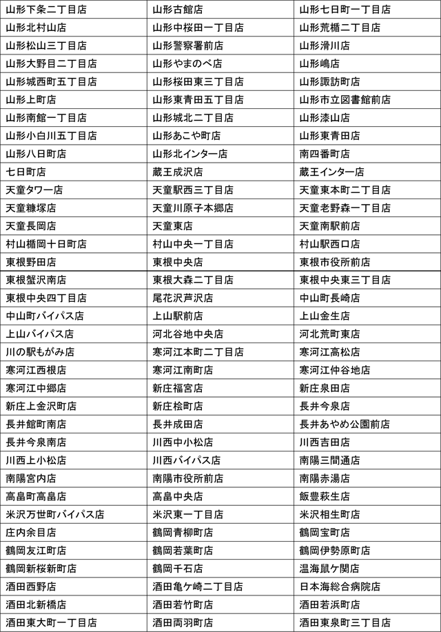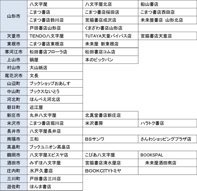 オフィシャルオンラインショップ、山形県内の主な書店、ローソン山形県内各店舗