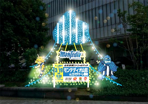 弊クラブスポンサー・正会員の株式会社山形新聞社様により、モンテディオ山形を応援し、ホームゲームの注目と話題を高め、ひとりでも多くの方にスタジアムご来場いただくために、山形市中心部の山形メディアタワー前にイルミネーションボードを設置、点灯頂きます。2017年3月19日(日)の「山形新聞スペシャルマッチ」ホーム開幕戦カマタマーレ讃岐戦の告知を皮切りに、シーズン最終戦まで試合告知とイルミネーション点灯を予定しております。