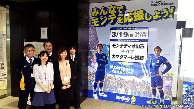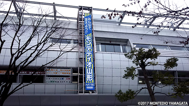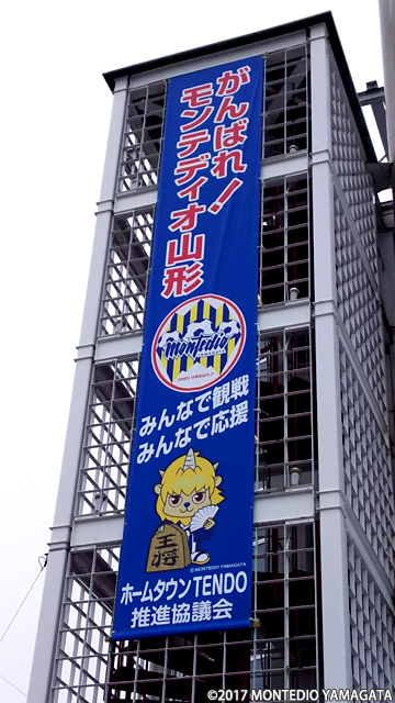 2017年3月2日(木)、寒さも一段落し春近しを感じさせる空気の中、山形県天童市内の2か所に、素晴らしいモンテディオ山形ホームゲームの告知物が設置されました。