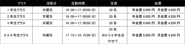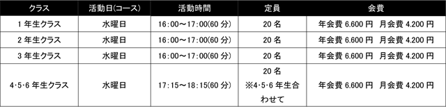 ※入会については先着順とさせて頂きます。昨年からの継続の方を優先させて頂くため、既に定員に近づいているコースもございます。定員を超えた応募があった際はウェイティング(空き待ち)となりますので、予めご了承ください。