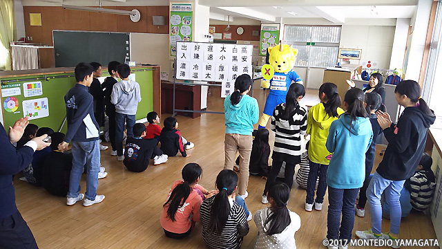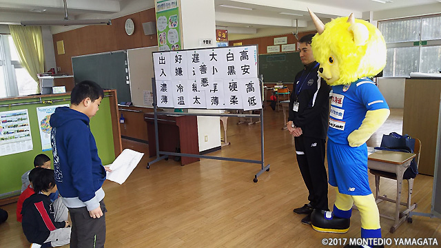 その後はモンテディオ山形の選手の食の話を交えた食育教室。モンテの選手も良く食べる発酵食品は納豆やキムチで、特に夜に食べると効果が高い、などの話に子供達も先生方も興味津々でした。