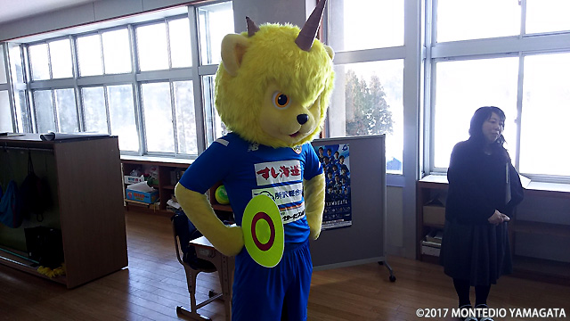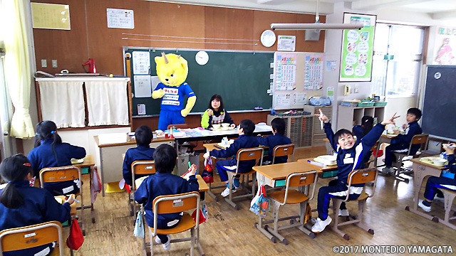 ディーオが最上町立富沢小に応援給食に行ってきました