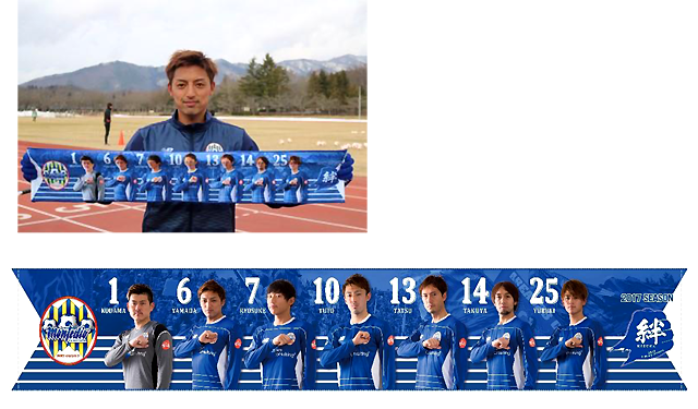 2017シーズンのチームスローガン「絆」を胸に戦う選手たちとバックにはそれを支えるサポーターの姿がプリントされています。数量限定での販売となりますのでお早目にお買い求めください!!
