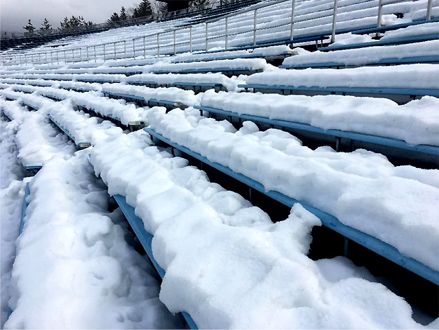・階段や通路、スタンドでは深いところで35センチの雪が残っております。