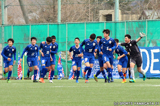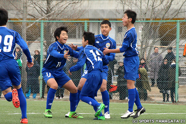 | 試合経過: 立ち上がりから果敢に攻撃を仕掛けたモンテディオ山形ジュニアユース村山は、10分MF高橋侑史がペナルティエリア内で倒されてPKを獲得。11分高橋が落ち着いてPKを決めて先制。前半はそのまま1-0で終了した。後半に入ると、青森山田中が攻撃の勢いを強めたが、モンテディオ山形ジュニアユース村山は全員が守備の集中を切らさない。そして54分途中出場のMF土田舜介のフリーキックからキャプテンのMF矢萩啓暉がヘディングシュートを決め、青森山田中を突き放した。終了間際セットプレーから青森山田中キャプテンMF藤原優大にヘディングシュートを決められたが、その後は最後まで守備の集中を切らさず、2-1で試合終了。モンテディオ山形ジュニアユース村山は大会初優勝で、JFAプレミアカップ初出場を決めた。 |