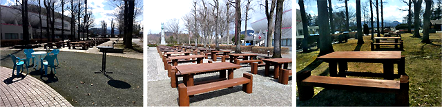 ※南北2エリアに合計27基のベンチに加え、更に可搬式のガーデンテーブルチェア、立食テーブルも周辺エリアに設置いたします。