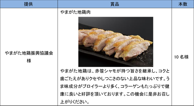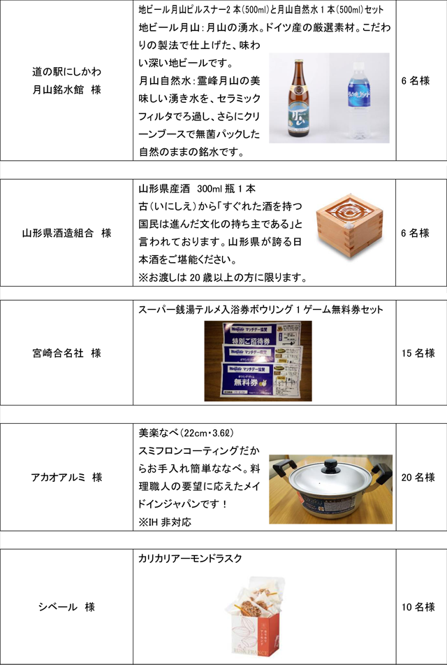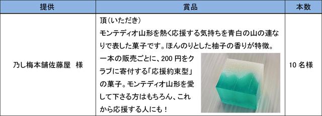 モンテディオ山形の勝利に貢献した選手が表彰されます。また、ご来場いただいたお客様も、「おいしい山形サポーター賞」にご応募いただくと抽選で以下の豪華賞品をお届け!