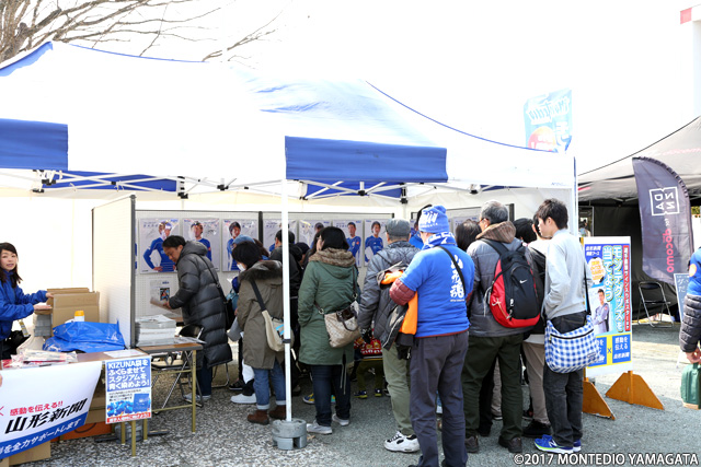 中央広場で長蛇の列となって人気となっていたのはこちらの「山形新聞特設ブース」。新加入12選手の直筆サイン入りポスターなどが当たるクイズなどを実施頂きました。