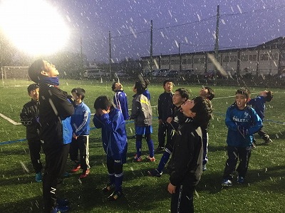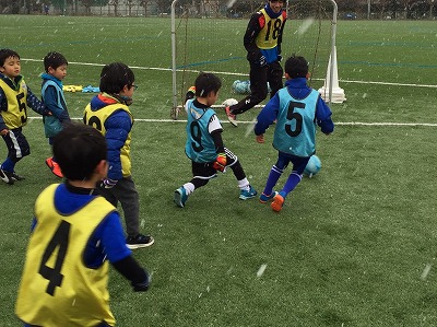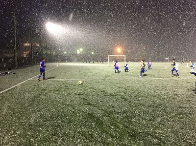 久しぶりに外で練習を行いました。時折雪も降ってきましたが、関係なくみんな試合を頑張ります!