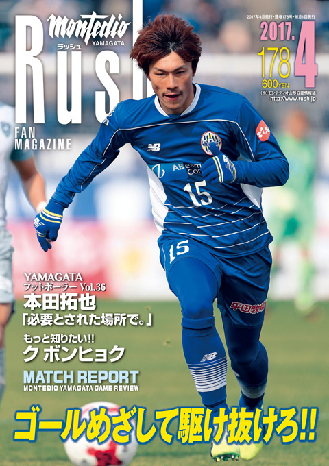Rush4月号は、新キャプテン本田拓也選手へのロングインタビュー「YAMAGATAフットボーラー」では、今年のチーム内の様子や序盤戦の戦いぶりを振り返ってもらいました。また、私服インタビュー「もっと知りたい!」で昨年夏に加入した若手韓国人MFク・ボンヒョク選手の普段の姿にせまります。