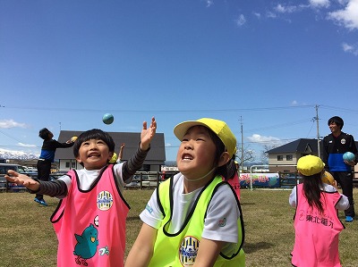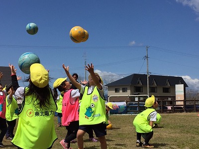 ふれあいフィールドはモンテディオ山形が地域貢献活動の一環として幼稚園・保育園・小学校を対象にアカデミーコーチを派遣し実施しているサッカー教室です。