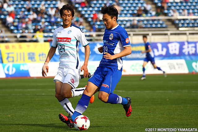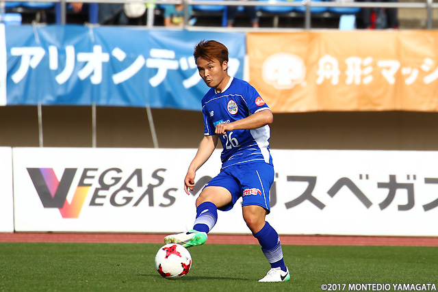 3試合続けてのスタメンとなった山田拓巳選手。激しい上下動と鋭い飛び出しで、サイドからチャンスを作っていきます。