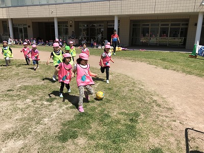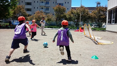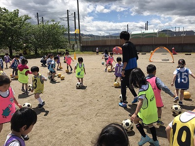 ふれあいフィールドでは地域貢献活動の一環として、幼稚園、保育園、小学校を対象に、アカデミーコーチを派遣し、実施しているサッカー教室です。