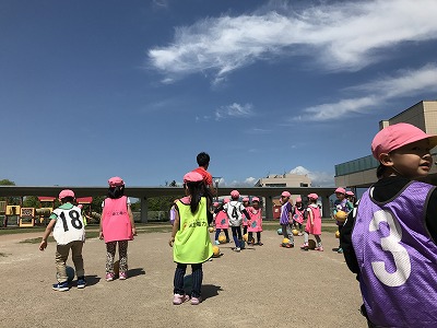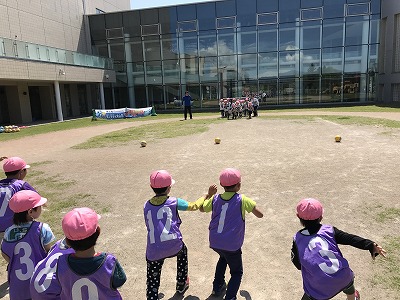 記念写真を撮りました。前日お邪魔したさくらんぼ保育所さんとは姉妹園という事で、10月には練習試合をするそうです。