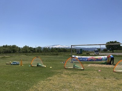 絶好の天気!コーチもテンションを上げて、準備に取り組みます!