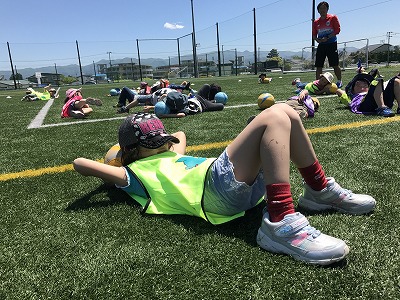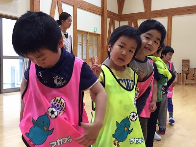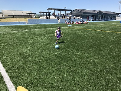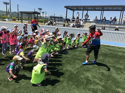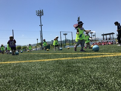 ふれあいフィールドでは地域貢献活動の一環として、幼稚園、保育園、小学校を対象に、アカデミーコーチを派遣し、実施しているサッカー教室です。