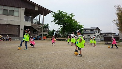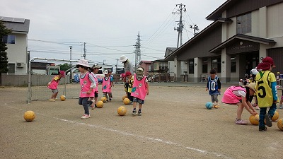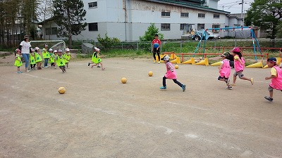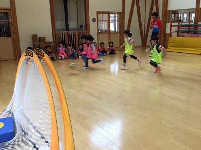 試合はたくさんボールを使って行いました。みんな一目散にボールに向かっていきます!