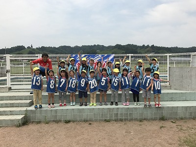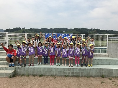 記念撮影まで笑顔!みんなとサッカーしてコーチも楽しかったです!